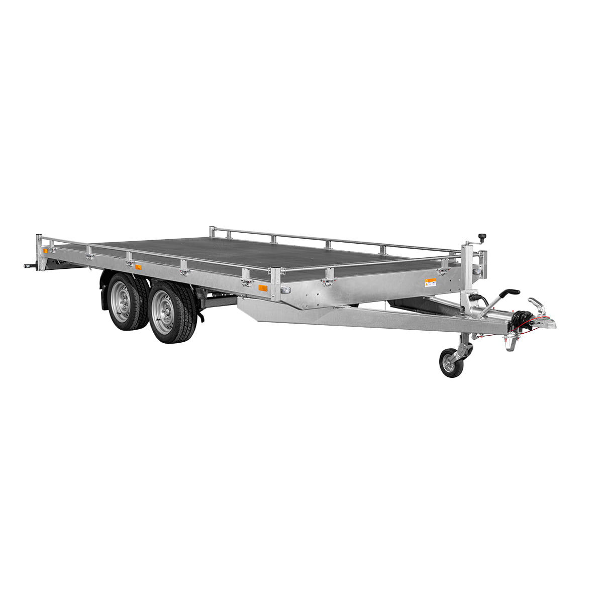 De Transporter is een krachtige aanhangwagen voor veelzijdig transport. Leverbaar als Machine-transporter, Multi-transporter of Auto-Transporter. Wij leveren zelfs een Kipper en Transporter in een!. In het algemeen bijzonder geschikt voor het vervoeren van werktuigen en voertuigen. Ideaal voor o.a. garages, hoveniers, aannemers en bouwbedrijven. Hij is leverbaar in diverse afmetingen en gewichtsklassen, met doorrijmogelijkheid, graafbaksteun en slot. Alles is mogelijk!